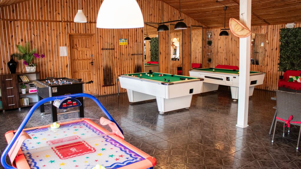 Kącik z grami to świetne miejsce na rozrywkę dla gości w każdym wieku. Wyposażona w bilard, piłkarzyki i inne gry, oferuje różnorodne formy aktywności, gdzie można rywalizować, rozwijać zręczność i spędzać czas w przyjaznej atmosferze. To idealne miejsce na chwile relaksu i dobrej zabawy.