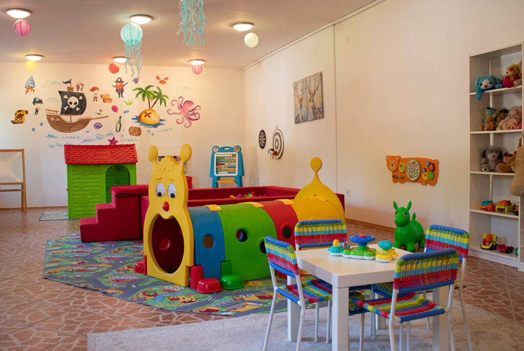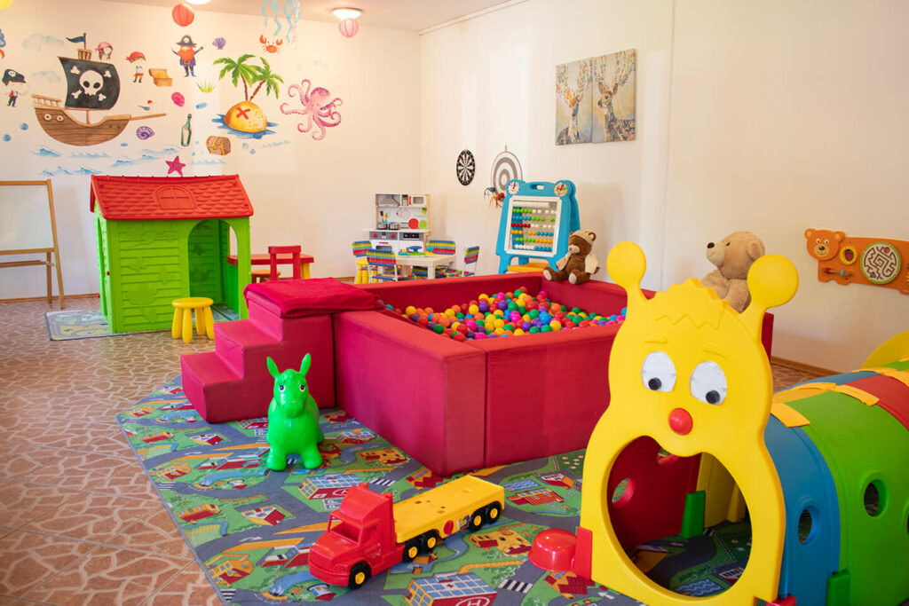 Nasz ośrodek stworzył przyjazne warunki także dla najmłodszych, oferując duży ogrodzony teren który umożliwia dzieciom na bezpieczną zabawę, dodatkowo oferujemy plac zabaw, boisko do gry, salę zabaw z basenem z piłeczkami, trampolinę, plac zabaw sensoryczny, ścieżka sensoryczna, basen, zjeżdżalnię wodna, animacje dla dzieci, pokazy bajek na dużym ekranie, a także piłkarzyki, ping – pong oraz bilard.